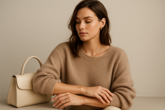 O corte também é determinante. Peças com linhas limpas, estrutura moderada e bom caimento fazem toda a diferença no visual. Uma camiseta bem cortada, um suéter liso impecável ou uma bolsa estruturada dizem muito mais do que qualquer peça cheia de detalhes. Corte é silêncio — e o minimalismo se comunica justamente nesse silêncio elegante.